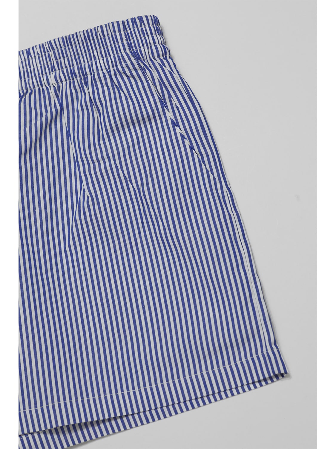 Blue striped boxer shorts with two side pockets and one in the back to fit your phone and other essentials. Featuring an off-body silhouette and cut from 100% premium cotton in classic vertical stripe for a clean, coastal look that remains comfortable from morning to night. This boxer short serves as premium underwear, around the house, and as an everyday lightweight short.