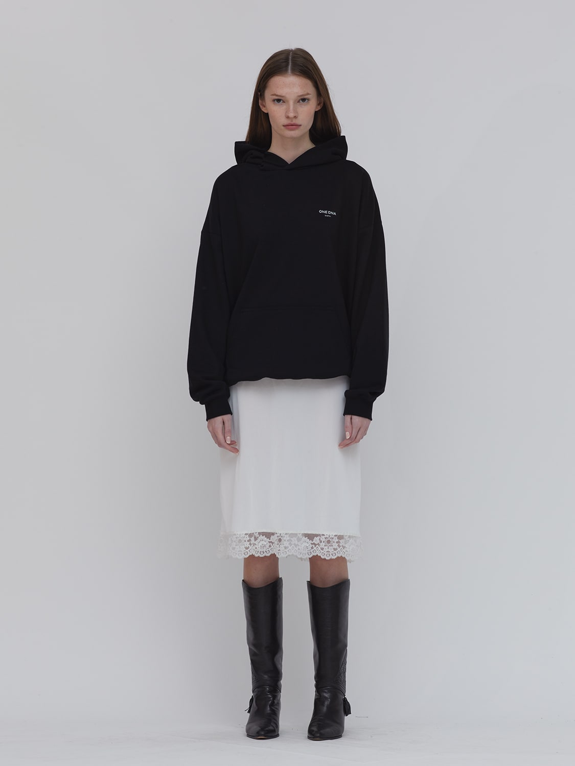 Black French terry hoodie. Medium weight. Clean. Minimal. Chic. For work, school, city, gym, sports and recreation, travel, lounging, everyday wear. Earth logo in white screen printed at front. Kangaroo pocket. Ribbed cuffs and hem. 100% Cotton.