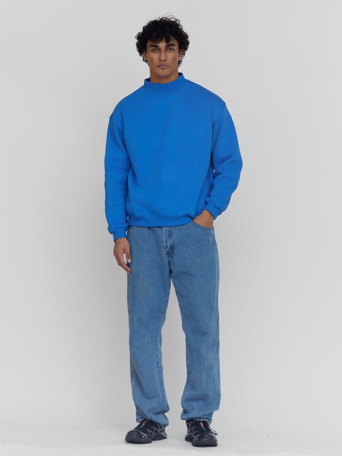 Premium Heavyweight Mock Neck Sweatshirt - Jersey Fleece in Electric Blue